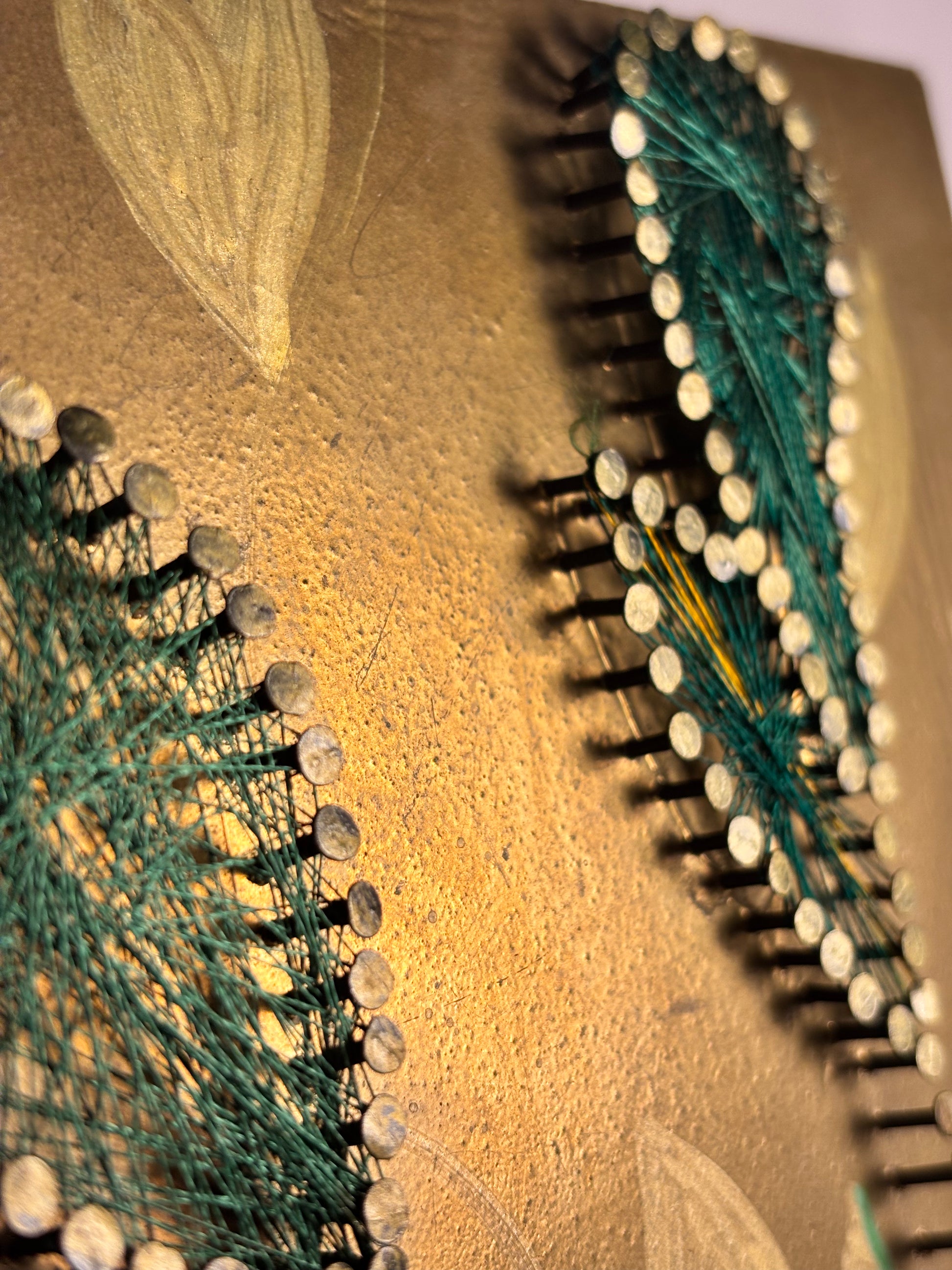 Bring the beauty of nature indoors with our captivating string art piece featuring a leaf creeper against a luxurious gold background. Handmade with intricate detailing, this artwork showcases the delicate vines and leaves in a stunning contrast that adds elegance to any space. Perfect for nature enthusiasts, it makes a unique statement piece or a thoughtful gift for art lovers.